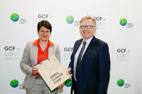 Die Deutsche Gesellschaft für Internationale Zusammenarbeit (GIZ) GmbH arbeitet weltweit für Klimaschutz und saubere Energie. Jetzt ist sie offiziell als Durchführungsorganisation für den Grünen Klimafonds (Green Climate Fund, GCF) akkreditiert worden. Howard Bamsey, Exekutivdirektor des GCF, und GIZ-Vorstandssprecherin Tanja Gönner haben den Vertrag heute am Rande der Weltklimakonferenz in Bonn unterzeichnet.