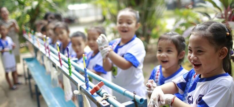 In Südostasien leiden viele Kinder an Krankheiten. Das erschwert das Lernen in der Schule. Mehr Hygiene verbessert die Gesundheit für 15 Millionen Schüler*innen.
