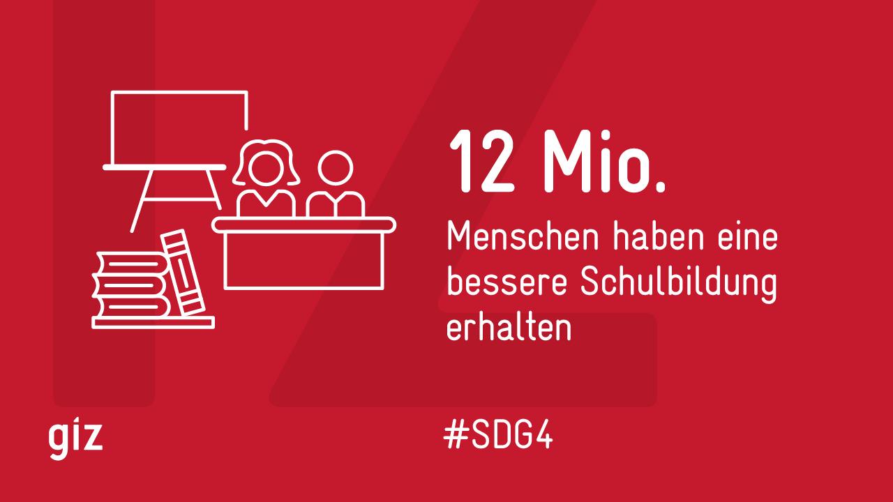 Die Zahlen für das Jahr 2020 zeigen: Auch in Zeiten der Corona-Pandemie konnten die Leistungen der GIZ viele Menschen erreichen, ihre Wirkung entfalten und somit zu den nachhaltigen Entwicklungsziele der Vereinten Nationen beitragen. Besonders das Gesundheitswesen benötigte im letzten Jahr vielfältige Unterstützung. Unter anderem durch die zahlreichen Corona-Sofortmaßnahmen der GIZ profitieren 89 Millionen Menschen von besseren Gesundheitsleistungen, beispielsweise 165 Millionen Menschen haben eine verbesserte Krankenversicherung erhalten. Die Pandemie hat nicht nur die Gesundheitsversorgung herausgefordert. Auch auf (Berufs-)Bildung hatte sie große Auswirkungen. Die GIZ passte Projekte in diesem Bereich schnell an und erweiterte sie vielfach um digitale Elemente: so trug sie dazu bei, dass zwölf Millionen Menschen 2020 eine bessere Schulbildung erhalten haben, 680.000 haben an einer beruflichen Weiterbildung teilgenommen.
