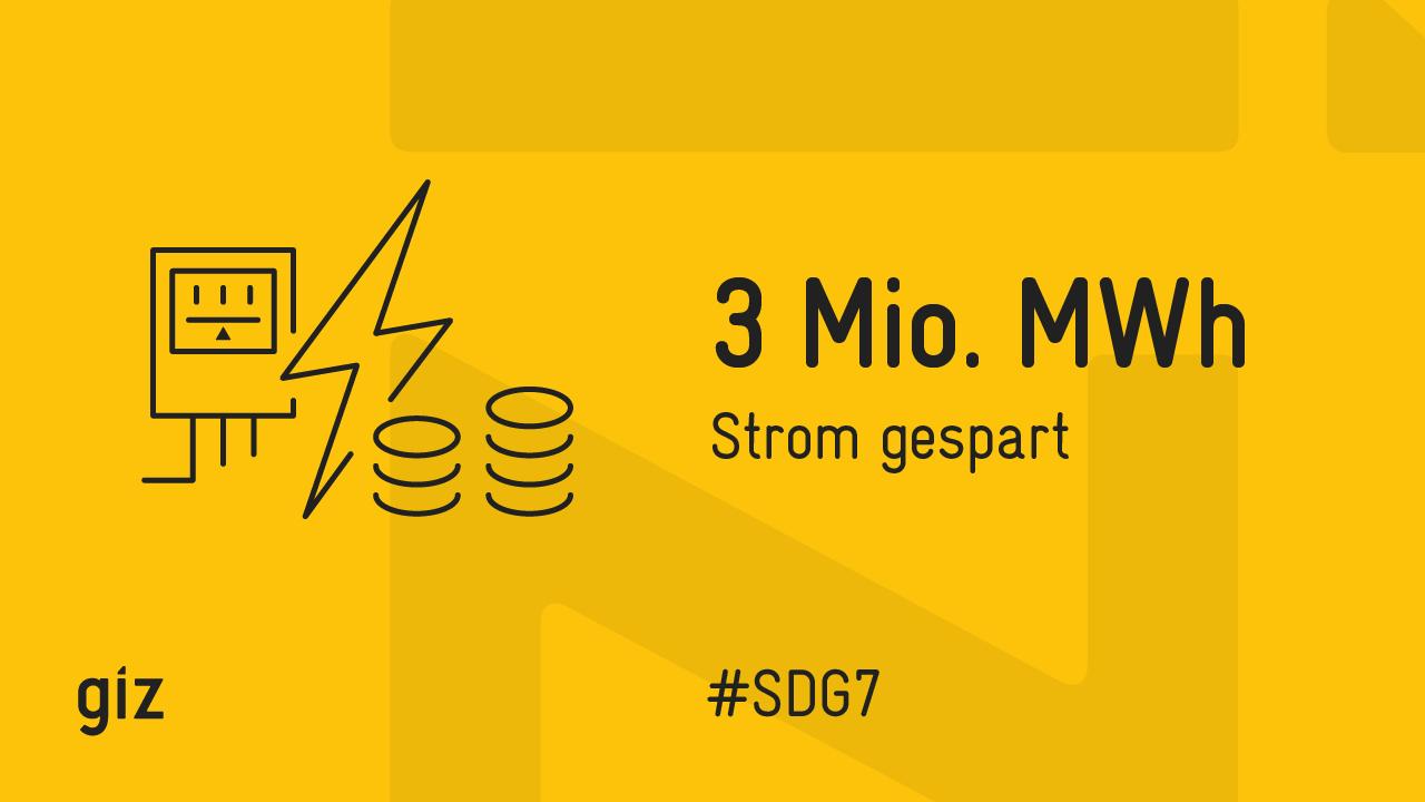 Beachtliche Ergebnisse gibt es auch im Energiesektor. Die GIZ hat dazu beigetragen, dass drei Millionen Megawattstunden Strom eingespart wurden. Zum Vergleich: Ein deutscher Durchschnittshaushalt verbraucht jährlich etwa 2.5 Megawattstunden Strom. Die Einsparung entspricht also umgerechnet über einer Million deutschen Haushalten. Eine Übersicht zu den Wirkungen der GIZ sowie weitere Informationen zum Thema finden Sie hier.