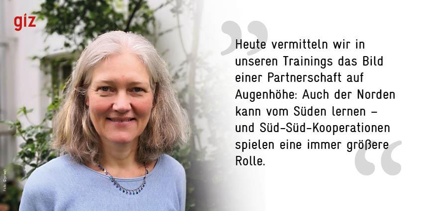 Früher gab es die weitverbreitete Haltung: Der überlegene Norden zeigt dem unterentwickelten Süden jetzt mal, wie es richtig geht. Diese Einstellung, die damals einfach normal war und kaum hinterfragt wurde, spiegelte sich auch in den Kursinhalten wider. Davon sind wir inzwischen zum Glück meilenweit entfernt. Heute vermitteln wir in unseren Trainings das Bild einer Partnerschaft auf Augenhöhe: Auch der Norden kann vom Süden lernen – und Süd-Süd-Kooperationen spielen eine immer größere Rolle. Es kann zum Beispiel sein, dass ein Experte aus Peru in einem Projekt in Mali berät, weil beide Länder vor ähnlichen Herausforderungen stehen und von den Lösungsansätzen des jeweils anderen profitieren können.
