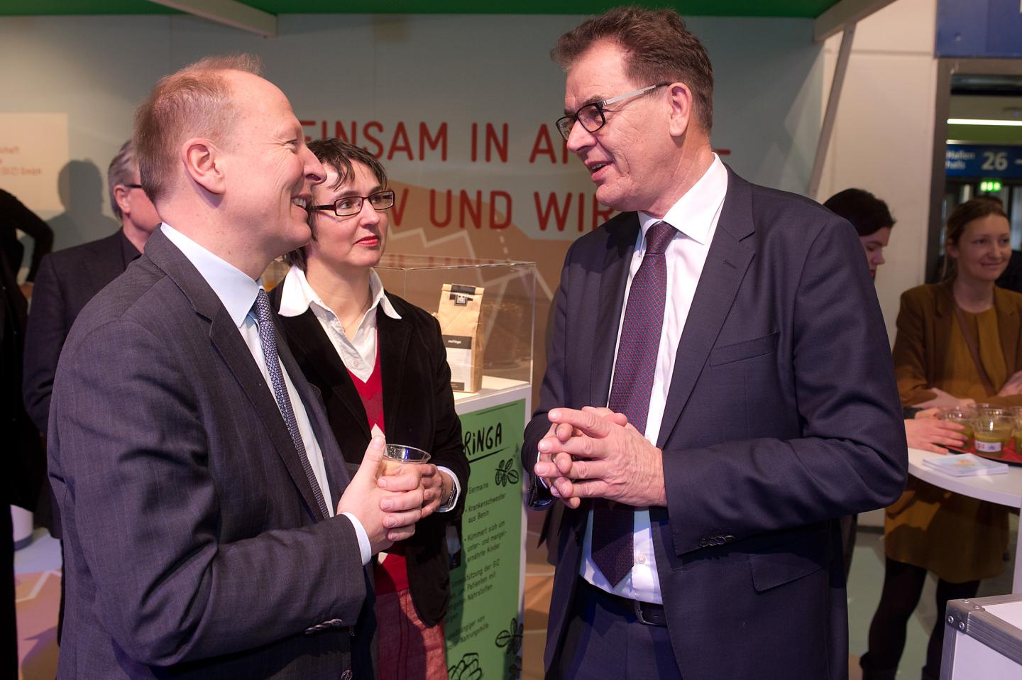 Bundesentwicklungsminister Dr. Gerd Müller eröffnete die Sonderschau am 20. Januar: "Zusammen mit unseren Entwicklungsexperten auf der ganzen Welt arbeiten wir dafür, dass Lebensmittel oder Kleidung unter fairen sozialen und ökologischen Bedingungen hergestellt werden. Damit erreichen wir Entwicklungssprünge in unseren Partnerländern, sichern die Zukunft der Menschen am Anfang der Produktionskette und leisten wesentliche Beiträge zum Umwelt- und Klimaschutz. Die Fortschritte, die wir hier erreichen, sind beeindruckend. Von unseren grünen Innovationszentren bis hin zum Textilbündnis erbringen wir den Beweis: mit fair geht mehr und jeder von uns kann dazu seinen Beitrag leisten."