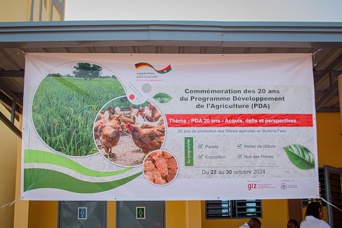 Le 04 juin 2024 et du 28 au 30 octobre 2024, le campus GIZ a vibré au rythme de la commémoration des 20 ans du Programme Développement de l’Agriculture (PDA). Cet événement marquant, a rassemblé des acteurs clés du secteur agricole, des personnes ressources autour des succès, des défis et des perspectives pour une agriculture durable au Burkina Faso.