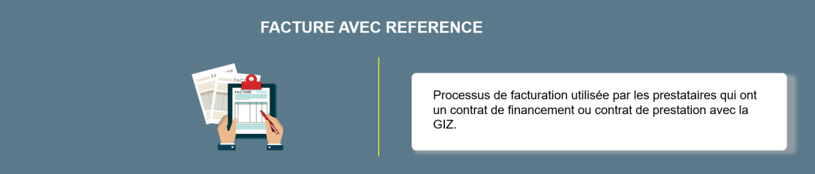 Ce type de facturation s’adresse principalement aux prestataires et fournisseurs ayant conclu avec la GIZ (GIZ) de petits contrats ou achats basés sur des bons de commande, par exemple. Contrairement à la facturation avec référence, il s’agit simplement de l’envoi de votre facture habituelle. Cependant, la GIZ impose plusieurs exigences spécifiques et des mentions obligatoires à inclure dans la facture.