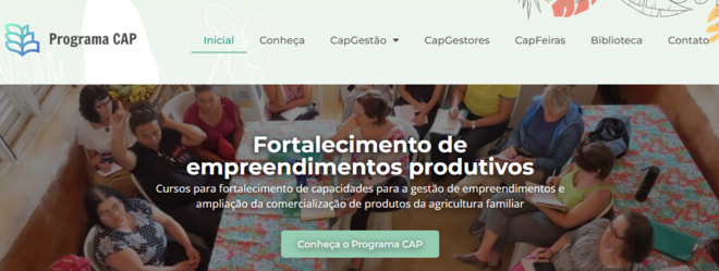 CapGestão Amazônia, CapGestão Cerrado, CapGestores e CapFeiras - esse conjunto de capacitações voltadas para fortalecer a agricultura familiar ganhou casa nova: acabamos de lançar o site do Programa CAP. Conheça mais sobre as capacitações oferecidas e explore materiais disponíveis para download.