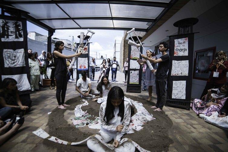 Durante tres días más de 300 docentes, estudiantes e investigadoras/es intercambiaron conceptos sobre proyectos pedagógicos en memoria y paz desde las regiones, e ideas sobre una agenda de trabajo común. Uno de los escenarios más valorados por las/los jóvenes asistentes fueron los talleres creativos: En compañía de especialistas del arte urbano lograron plasmar en murales, telas y pinturas, expresiones artísticas sobre la construcción de la memoria histórica.
