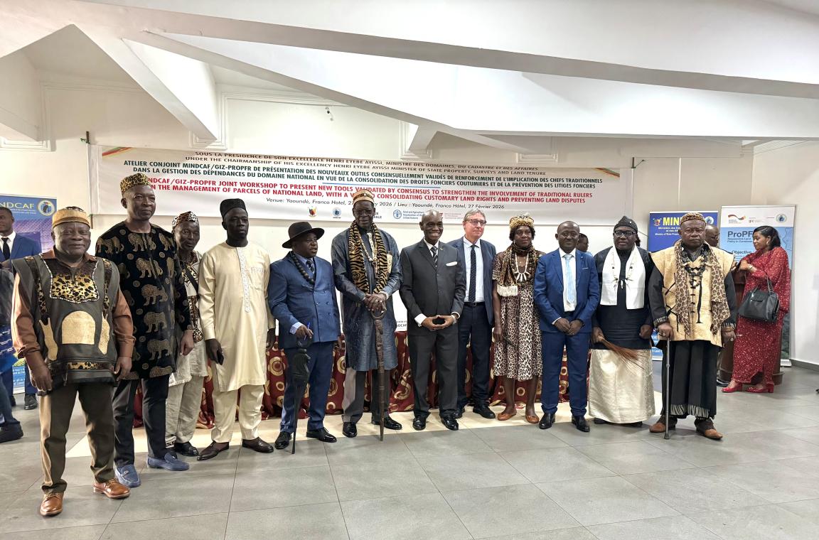 La coopération allemande au Cameroun, au travers du Projet ProPFR de la GIZ et le Ministère des Domaines, du Cadastre et des Affaires Foncières ont organisé le vendredi 27 mars un atelier de présentation des nouveaux documents fonciers adoptés par le MINDCAF en vue de doter les populations vulnérables d’un document foncier intermédiaire au titre foncier, facile d’accès et pouvant permettre de justifier le droit d’utilisation de la terre et de reconnaitre les mises en en valeur opérées sur un terrain.