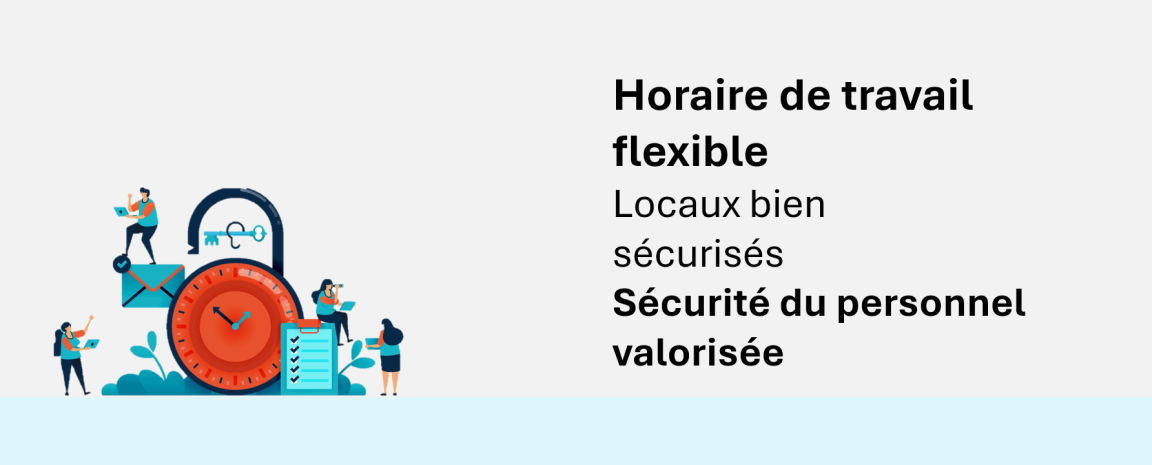 Votre épanouissement professionnel et personnel nous tient à cœur. Horaires de travail flexibles, avantages santé ou renforcement de capacité : nous mettons à votre disposition des avantages pensés pour s’adapter à votre situation et à vos besoins, aujourd’hui comme demain.