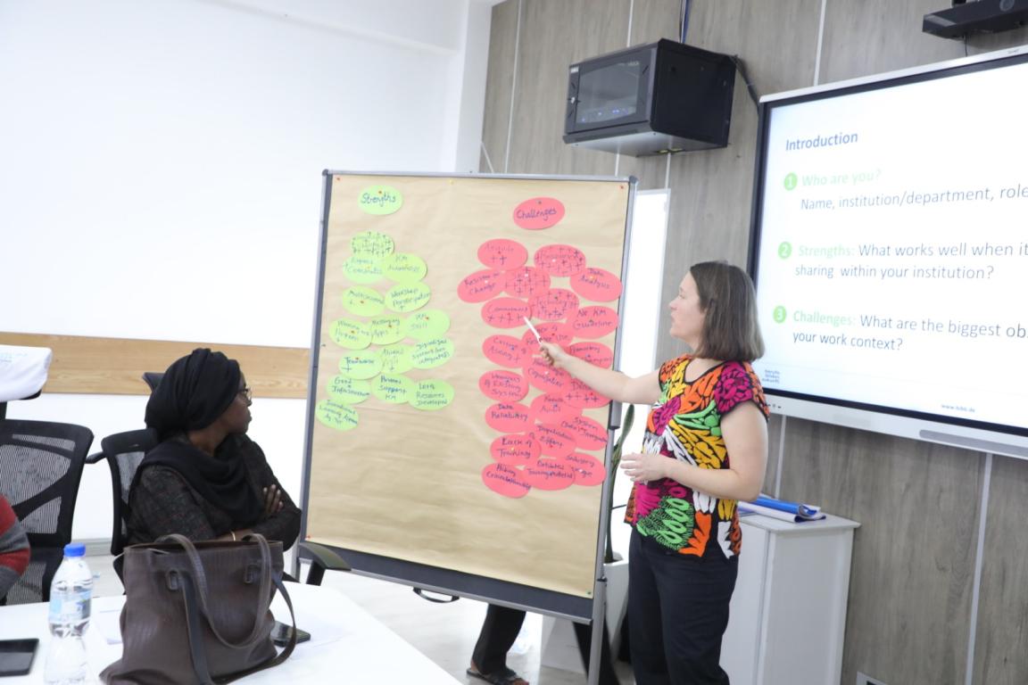 A central theme of the training was that knowledge, particularly in public institutions, is not just information, it rather is the core product. Tigist Kebede, Curriculum Development Desk Head in MoLS, stated that knowledge is produced in various mechanisms but “the challenge is that we don’t have a system to document and utilise it for internal and external knowledge sharing purposes.”