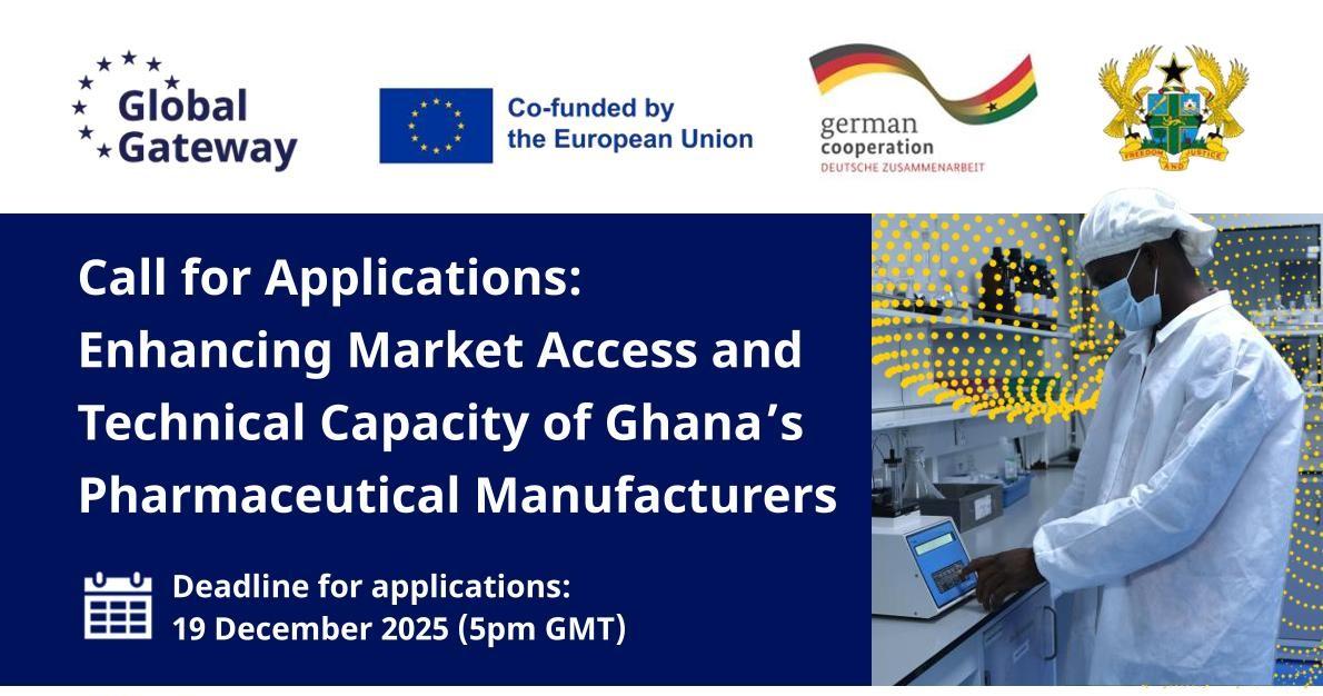 The “Strengthening the Ghanaian Pharmaceutical Sector with a Focus on Vaccine Production” (PharmaVax Ghana) programme is inviting qualified Ghanaian private pharmaceutical manufacturing companies to submit responses to this Call for Applications: Enhancing Market Access and Technical Capacity of Ghana’s Pharmaceutical Manufacturers.