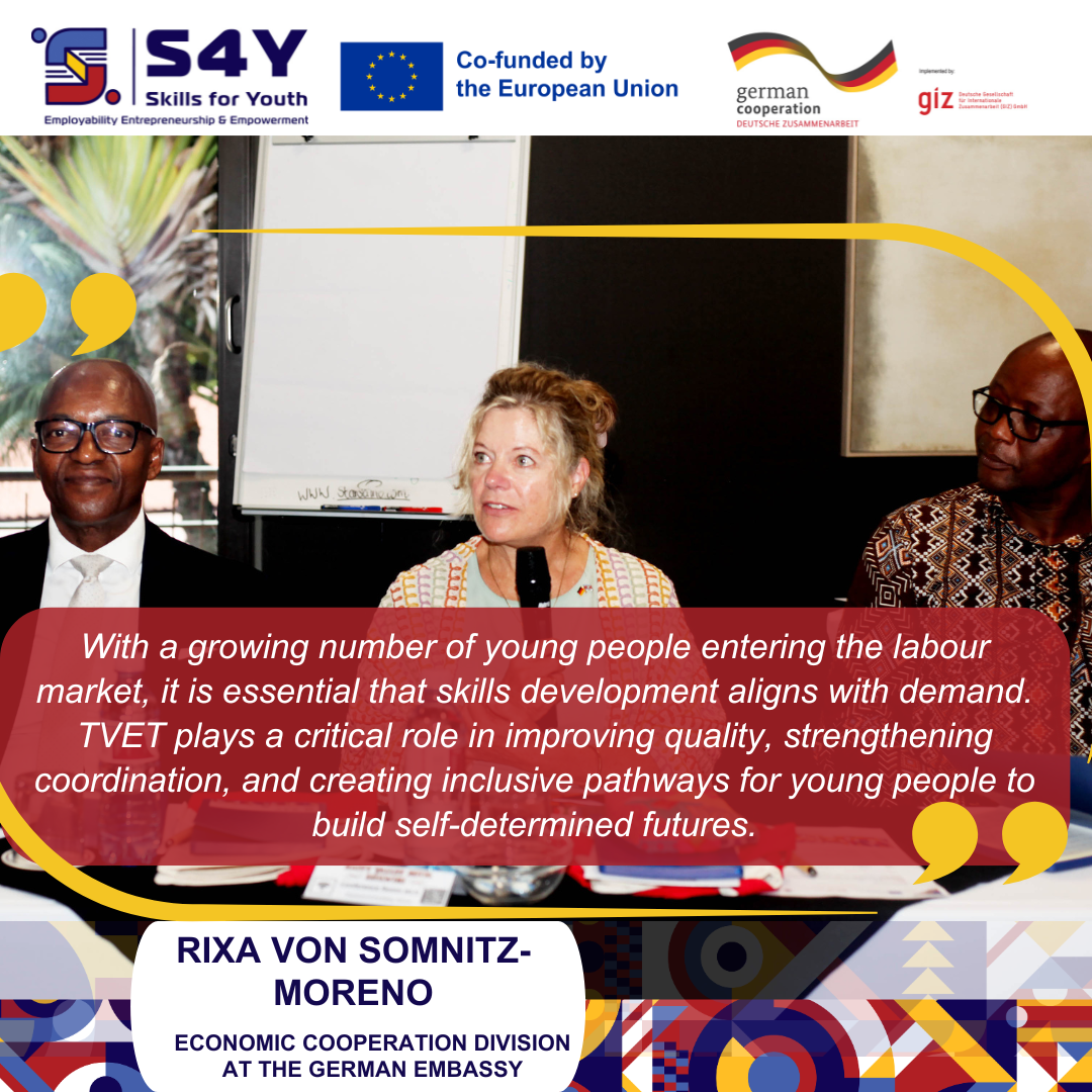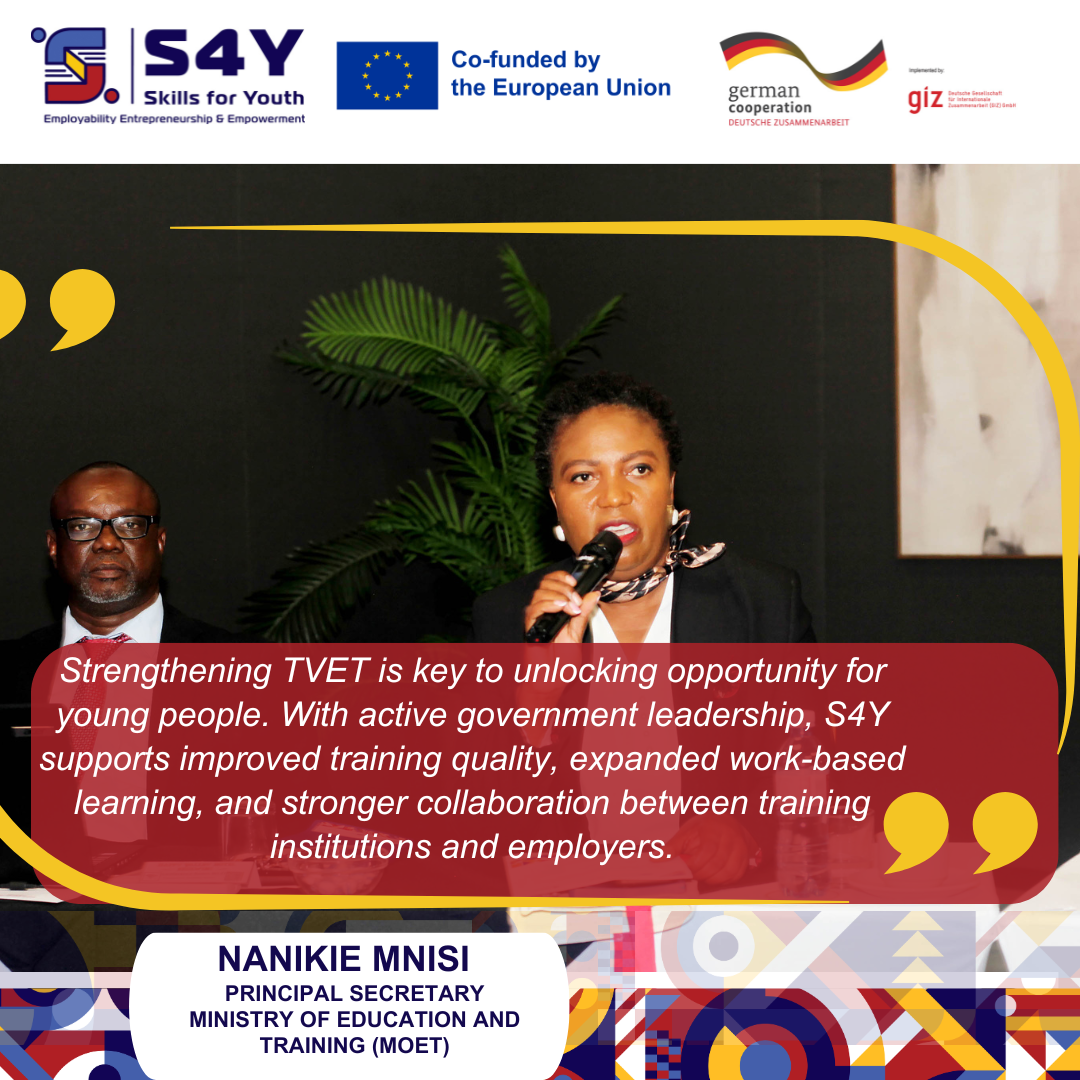 Nanikie Mnisi,Principal Secretary for the Ministry of Education and Training (MoET) emphasised that strengthening TVET is key to unlocking opportunity for young people. With active government leadership, S4Y supports improved training quality, expanded work-based learning, and stronger collaboration between training institutions and employers.“With a growing number of young people entering the labour market, it is essential that skills development aligns with demand. TVET plays a critical role in improving quality, strengthening coordination, and creating inclusive pathways for young people to build self-determined futures,” said Rixa von Somnitz-Moreno, Economic Cooperation Division at the German Embassy.