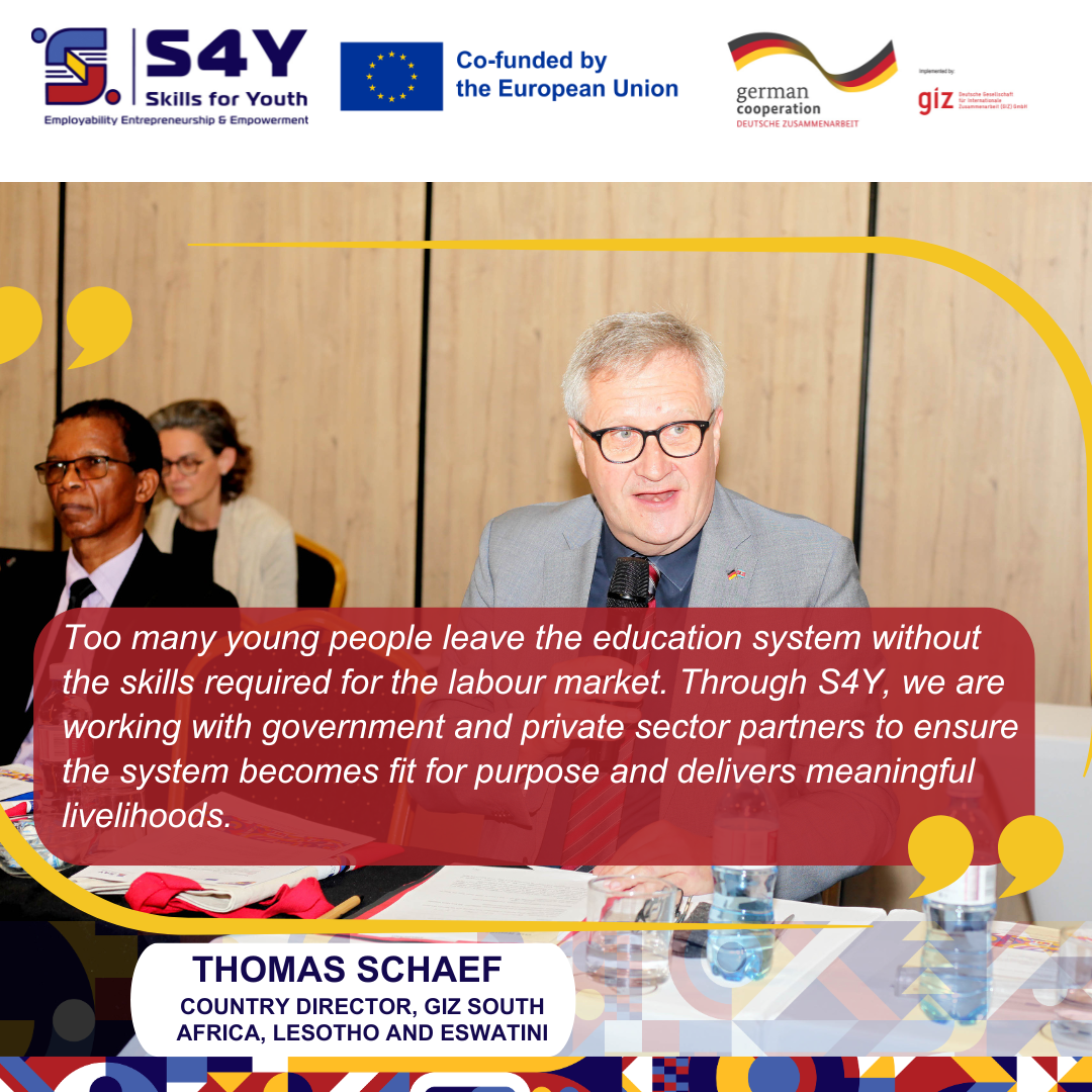 “Too many young people leave the education system without the skills required for the labour market. Through S4Y, we are working with government and private sector partners to ensure the system becomes fit for purpose and delivers meaningful livelihoods,” said Thomas Schäfer, Country Director of GIZ South Africa, Lesotho and Eswatini.