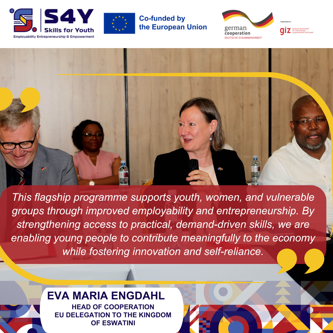 “This flagship programme supports youth, women, and vulnerable groups through improved employability and entrepreneurship. By strengthening access to practical, demand-driven skills, we are enabling young people to contribute meaningfully to the economy while fostering innovation and self-reliance,” said Eva Maria Engdahl, Head of Cooperation, EU-Delegation to the Kingdom of Eswatini.