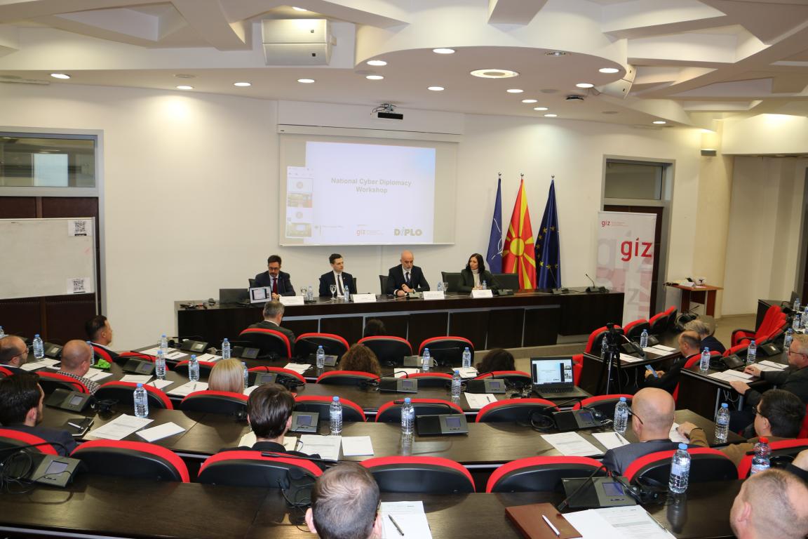 Around 50 representatives from key national institutions gathered today in Skopje at the Ministry of Foreign Affairs and Foreign Trade for a workshop dedicated to strengthening awareness and cooperation in the field of cyber diplomacy. The event was opened by Ambassador Mr. Vele Trpevski and Mr. Kevin Maass from the German Embassy in Skopje.